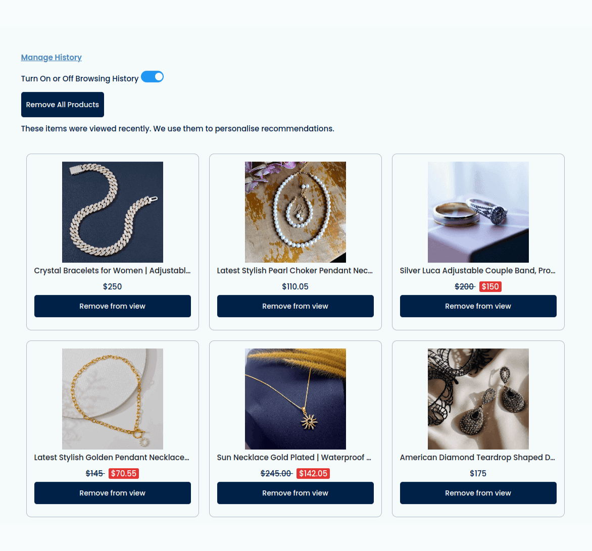 Yes, customers have the option to delete products from their history or turn off their browsing history completely.