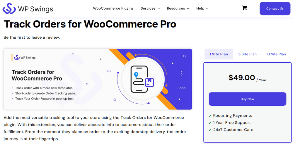Pricing– Track Orders for WooCommerce Pro is priced at $49.