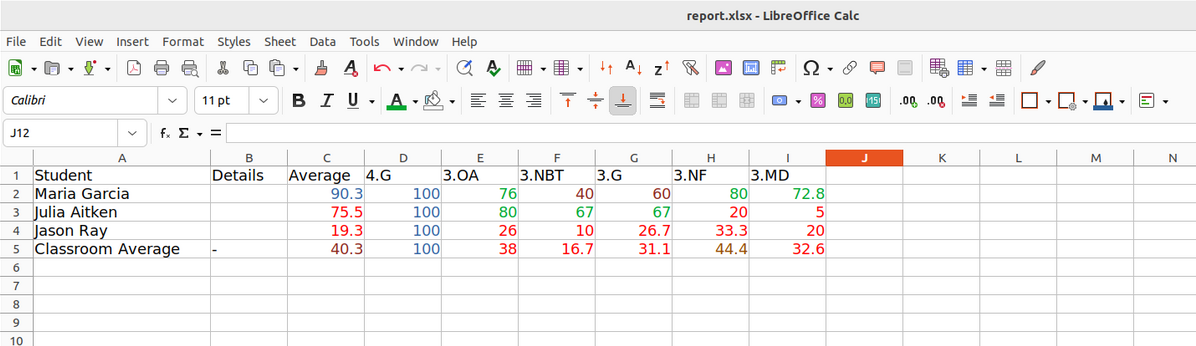 - We added a functionality, where a teacher can export the entire class report currently being viewed into an XLSX file along with the color coding.