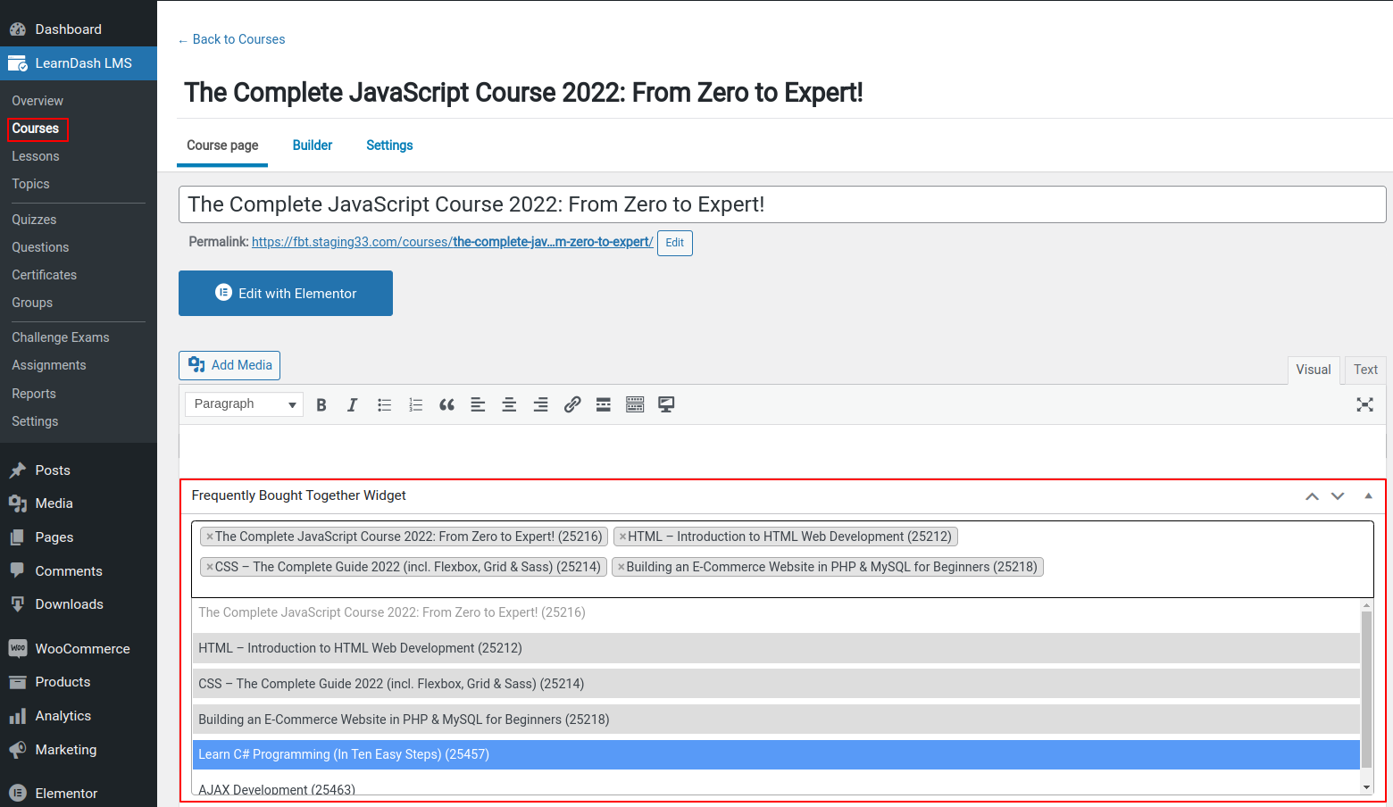 Before you can set Frequently Bought Together for your courses, please make sure that LearnDash courses are linked correctly with their corresponding products listing in WooCommerce or Downloads listing in Easy Digital Download(EDD).