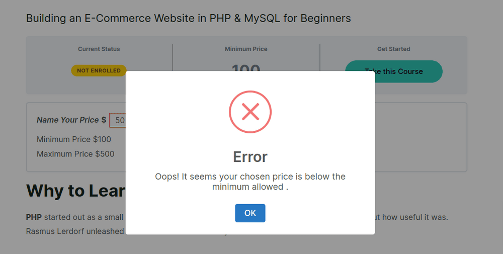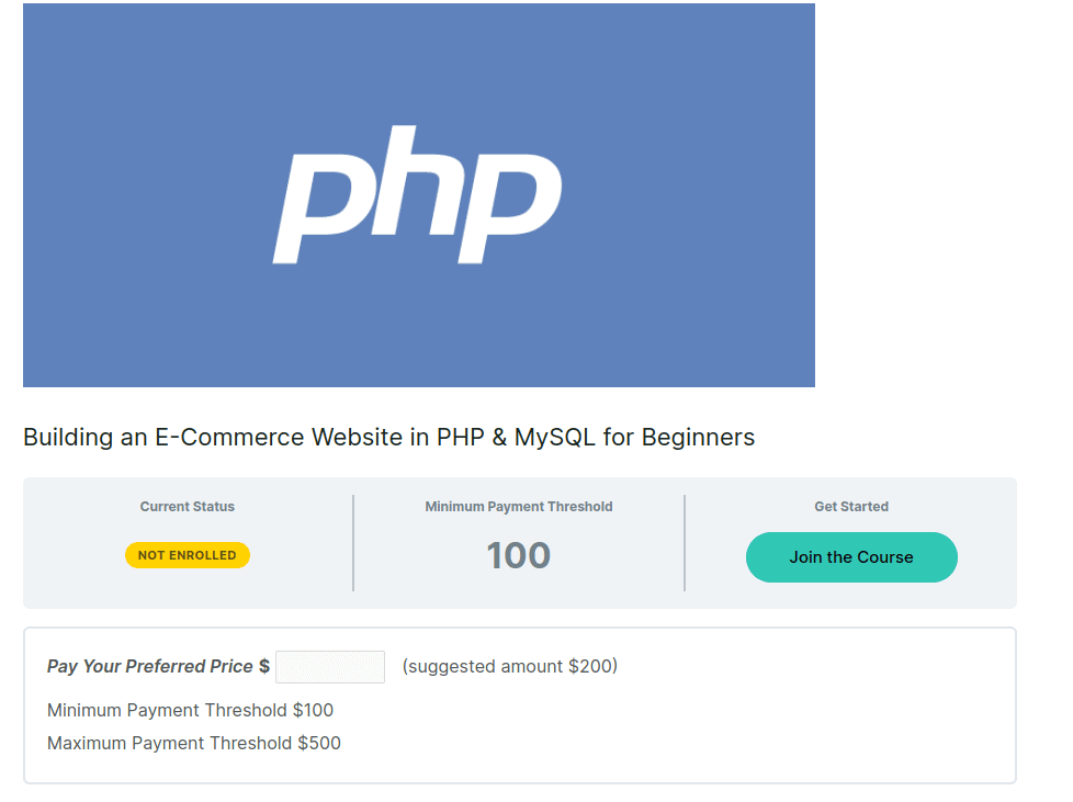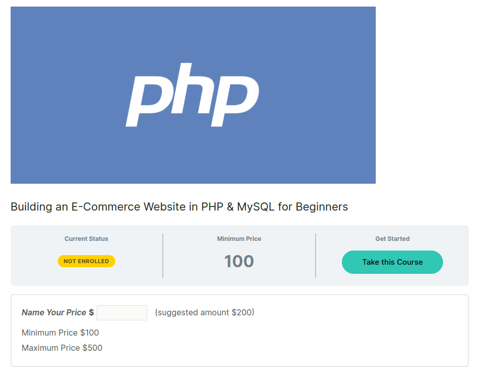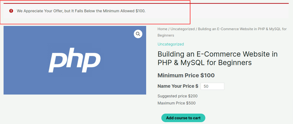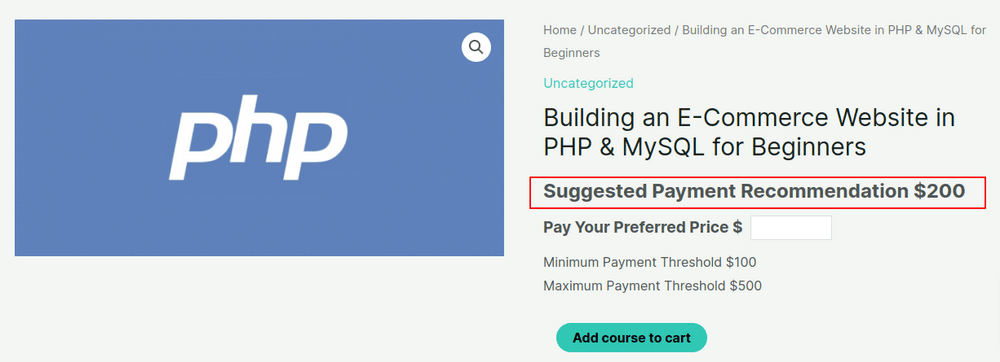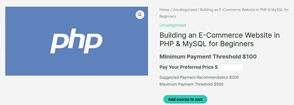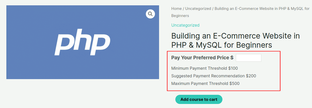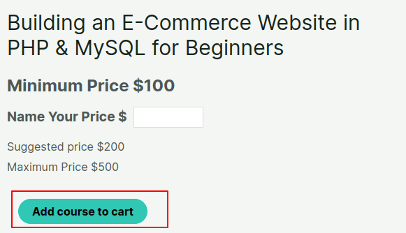 This setting lets you display the “Name Your Price” on the course page. It allows customers to buy the course directly from there, without having to go to the WooCommerce product page. When they click to buy, the course is added straight to the WooCommerce cart.