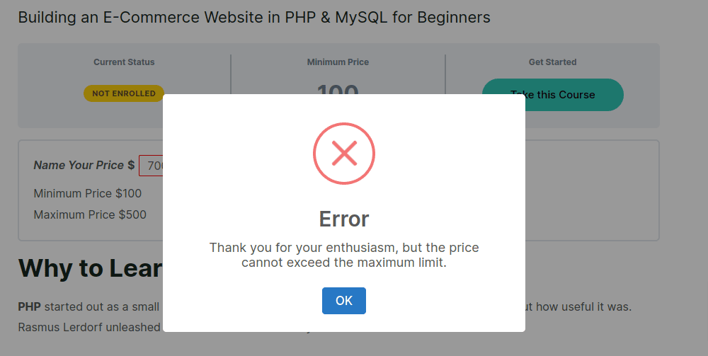 Maximum Price (Optional): The Maximum Price field provides you with the flexibility to set an upper limit on the price that customer can pay for the course product. This field is entirely optional and can be left blank or set to 0 if you do not wish to impose an upper limit. However, when used, it ensures that customer cannot pay more than the specified maximum amount.