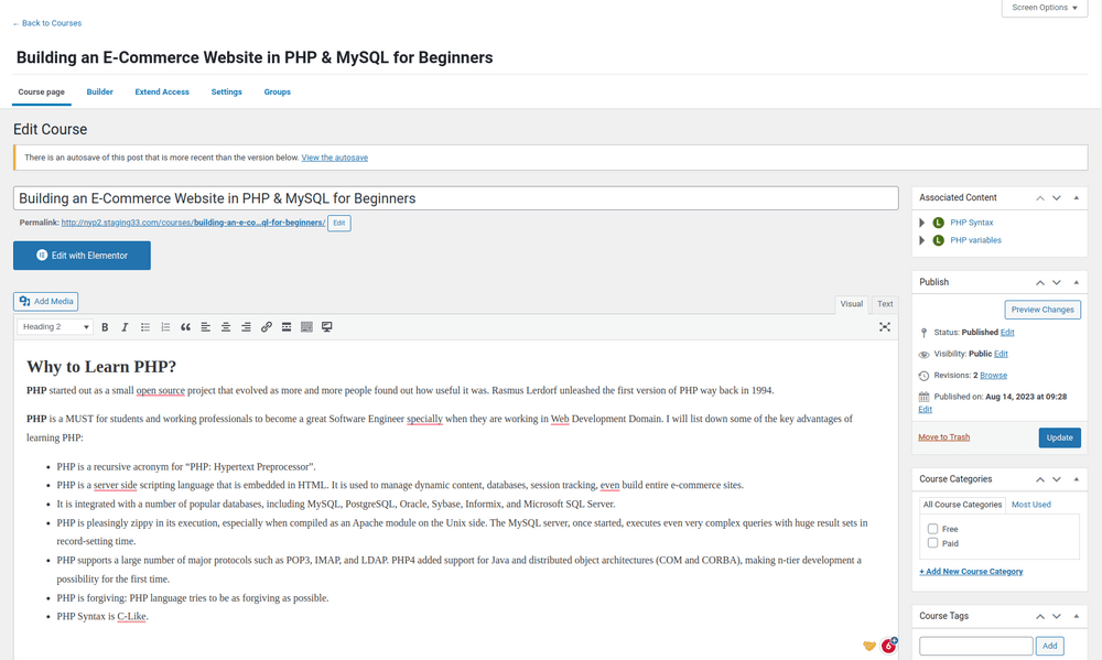 1. Create a course LearnDash LMS -> Courses -> Add new.