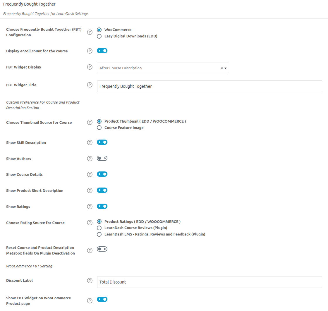 The Frequently Bought Together for LearnDash plugin now supports dynamic rating options! Choose between Product Ratings, LearnDash Course Reviews plugin, or LearnDash LMS reviews to display trusted feedback alongside course bundles, enhancing credibility and encouraging more enrollments through social proof.