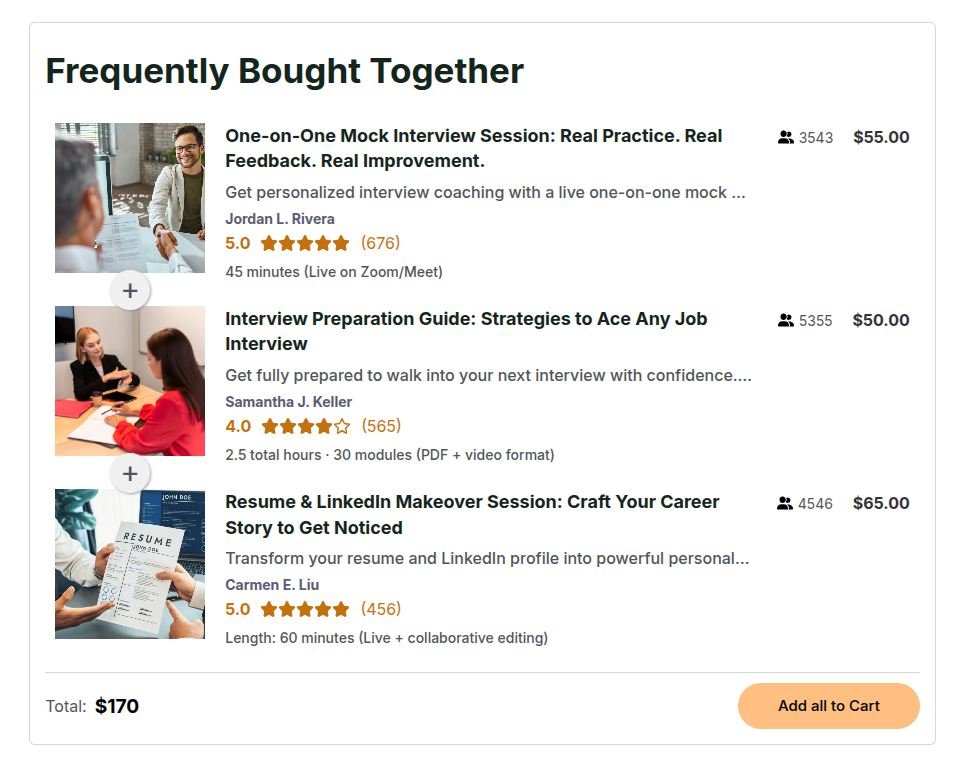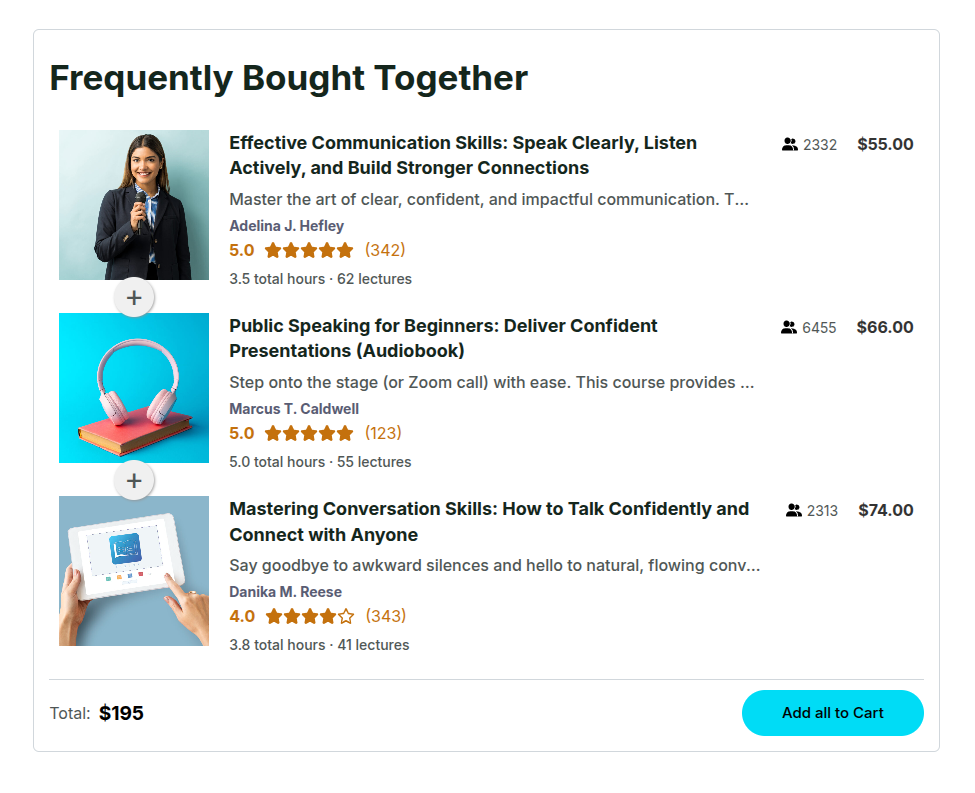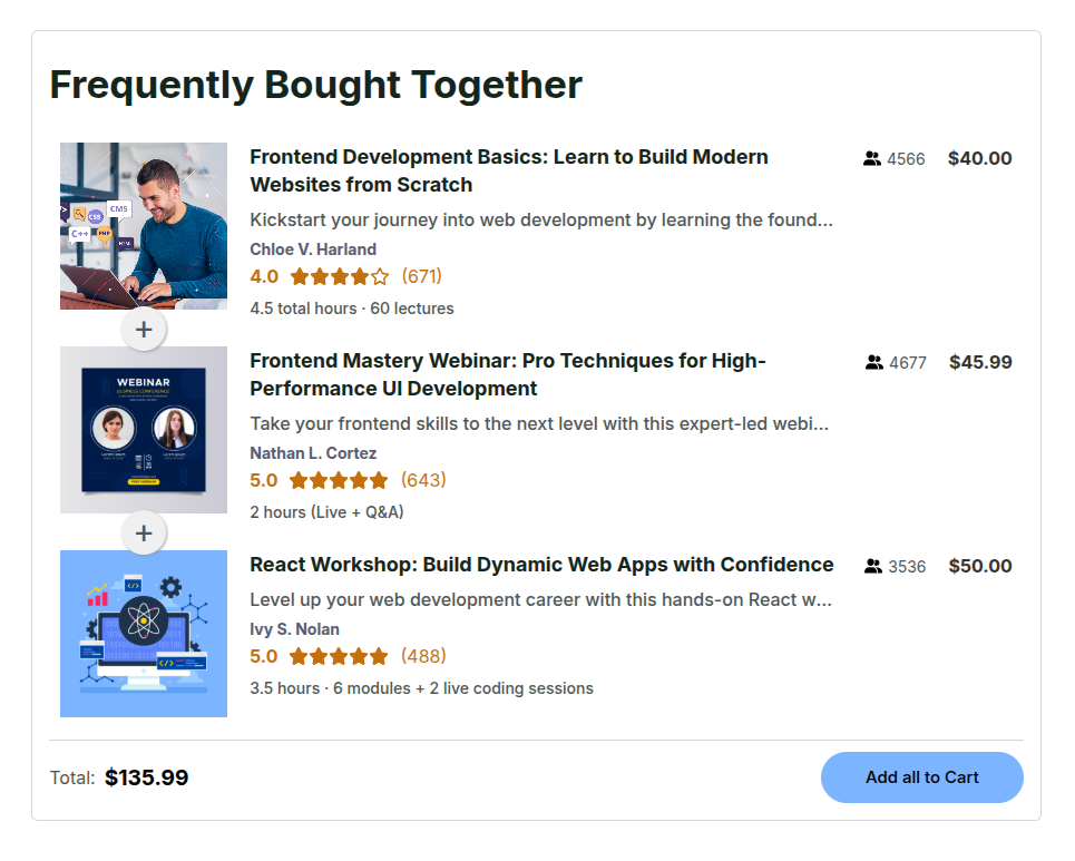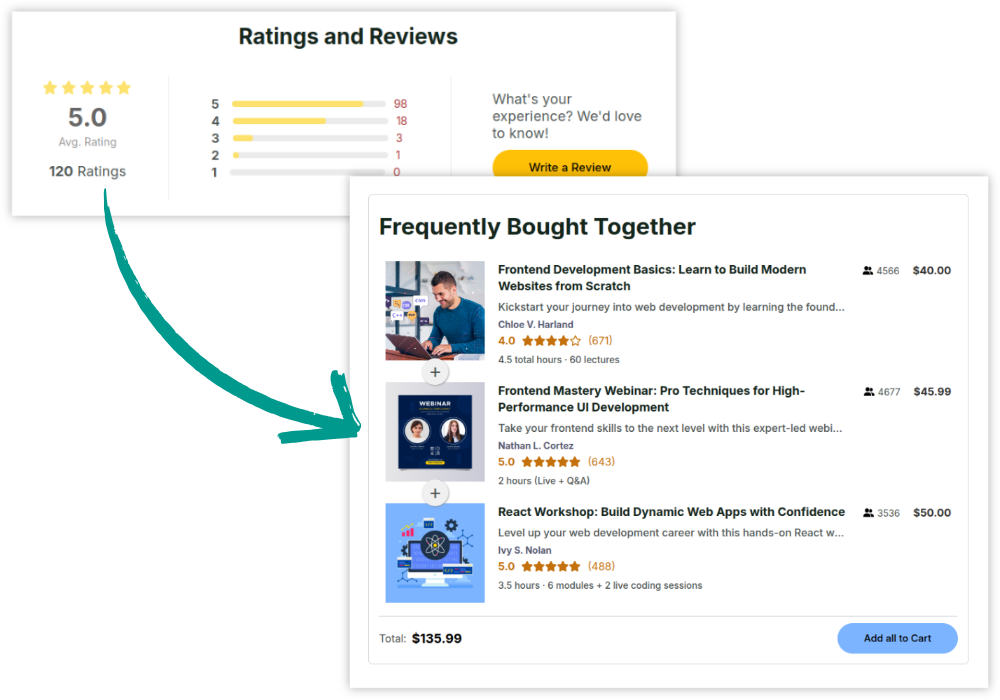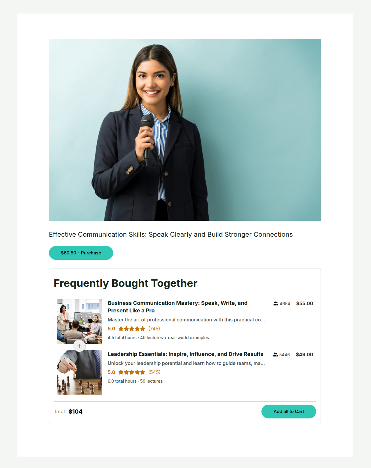 Drive more sales by showing a section suggesting courses usually bought together with the course watched by the customer.