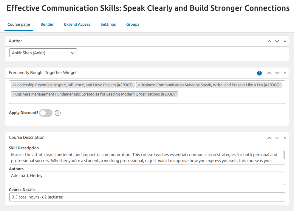 The Frequently Bought Together for LearnDash plugin now supports displaying multiple authors in the front-end author widget. Perfect for team-taught or co-created courses, this update highlights every contributor- giving them due credit and building more trust with potential learners.